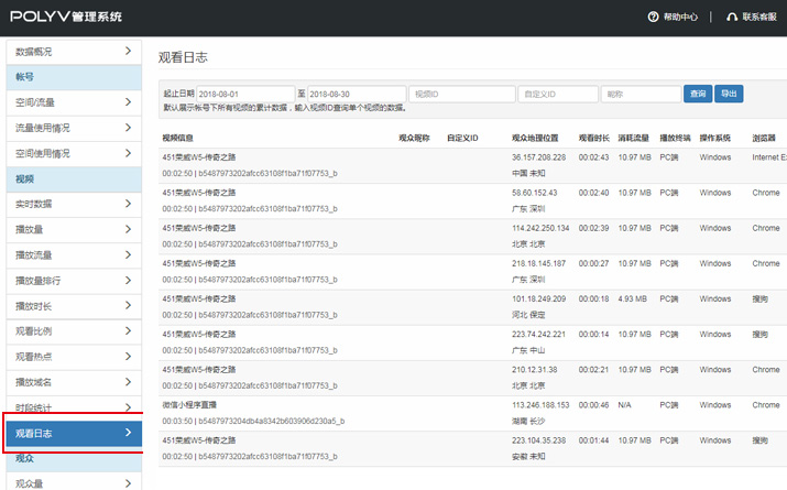 相关标签: 视频观看量占比 观看热点 观众来源统计 数据导出 视频打点