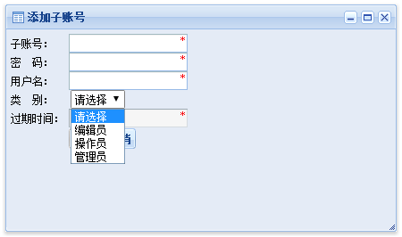 可选择子账号的类型:编辑员、操作员、管理员。