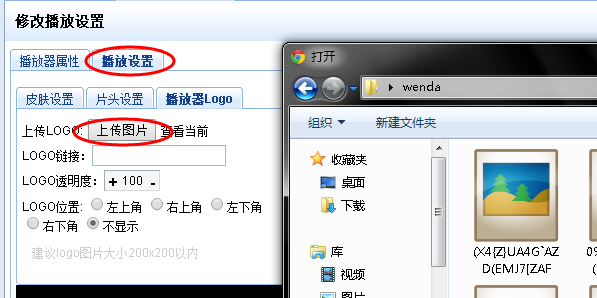 — 点击修改已有播放器(或添加)— 点击播放设置 — 播放器LOGO,界面如下图: