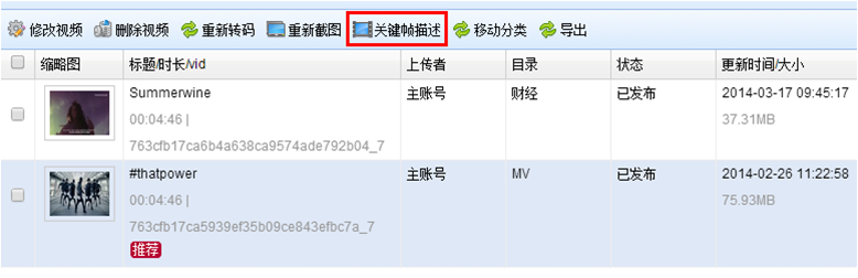 ) — 选中视频 — 视频列表上方找到关键帧描述,如下图: