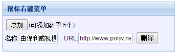 — 右侧的播放器属性 — 点击修改已有播放器(或添加) — 鼠标右键菜单,界面如下图:自定义播放器右键菜单的显示内容以及跳转地址;