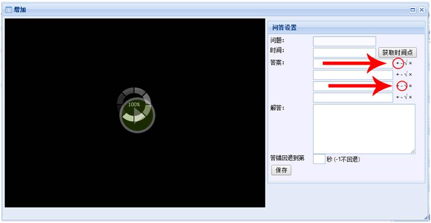 点击“增加”选项,可以进行视频问答环节的设置,如下图: