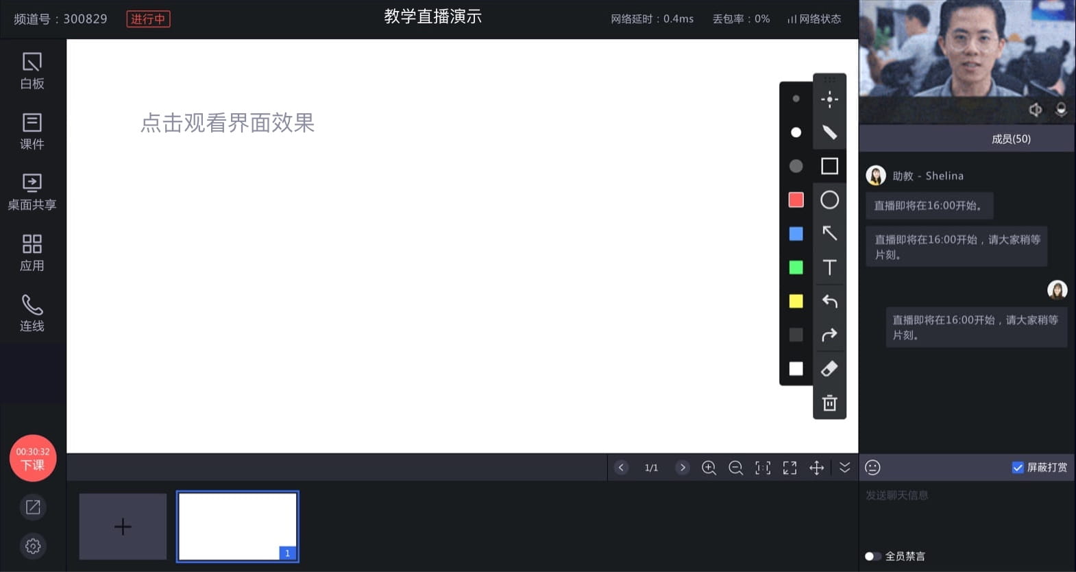 教育类用户专属,讲师操作便捷,即开即播