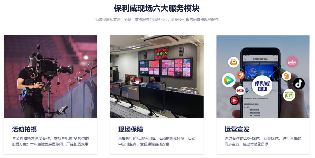 直播前:保利威在全国各地拥有专业的直播服务团队,会根据直播场地优先安排同城专业影像师,48小时内到位。直播前会根据企业需求,定制专业化、高标准的现场拍摄执行方案,并赴实地勘察,活动前测试预演,提前设备、人员风险预案。