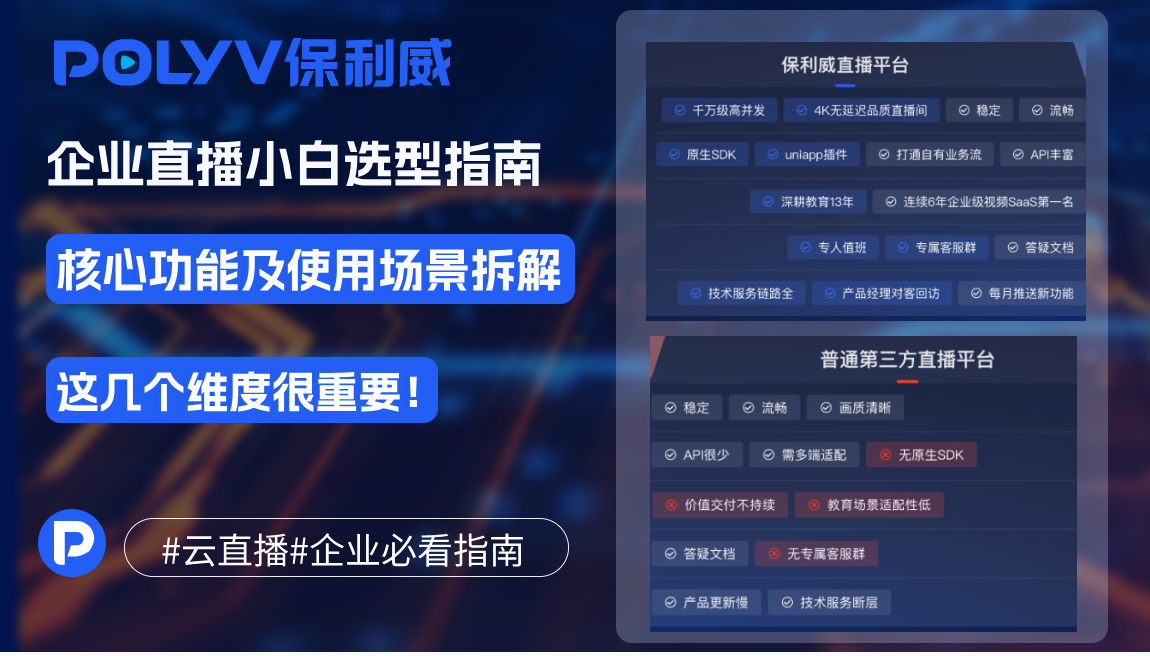 对刚接触企业直播的小白而言,面对市面上五花八门的平台,很容易陷入功能越多越好的误区,最后踩坑无数:要不就是平台技术不行导致直播事故,要不就是为了冗余功能白花钱。其实,企业SaaS直播平台的核心价值,就在于用精准功能匹配实际业务场景,而非堆砌无关功能。作为服务超30万企业的行业标杆,保利威的功能布局与场景适配逻辑,恰好为小白提供了清晰的入门参考,接下来我就将从核心功能拆解、典型场景落地两方面,帮你快速搞懂企业SaaS直播平台该怎么选、怎么用。