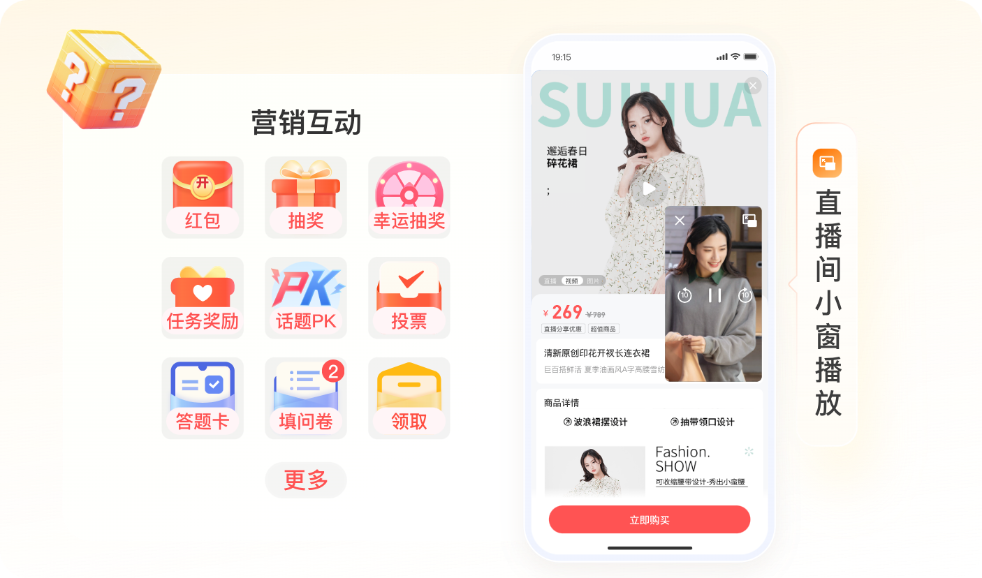 ·全终端兼容适配:原生兼容 PC、Web、微信小程序、APP等主流终端,观众无需下载额外软件,微信生态内无需跳转即可观看;