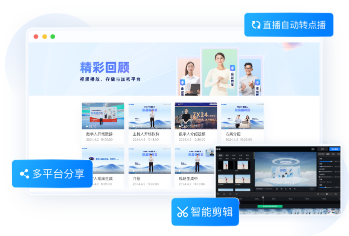 ·AI智能内容处理:依托大模型实现AI助教智能答疑,观众提问后自动匹配答案,无需人工值守;提供AI大纲辅助直播推进,还有AI智能剪辑功能,可将直播回放自动剪辑为精品课片段,降低内容二次加工成本,提升内容复用效率。