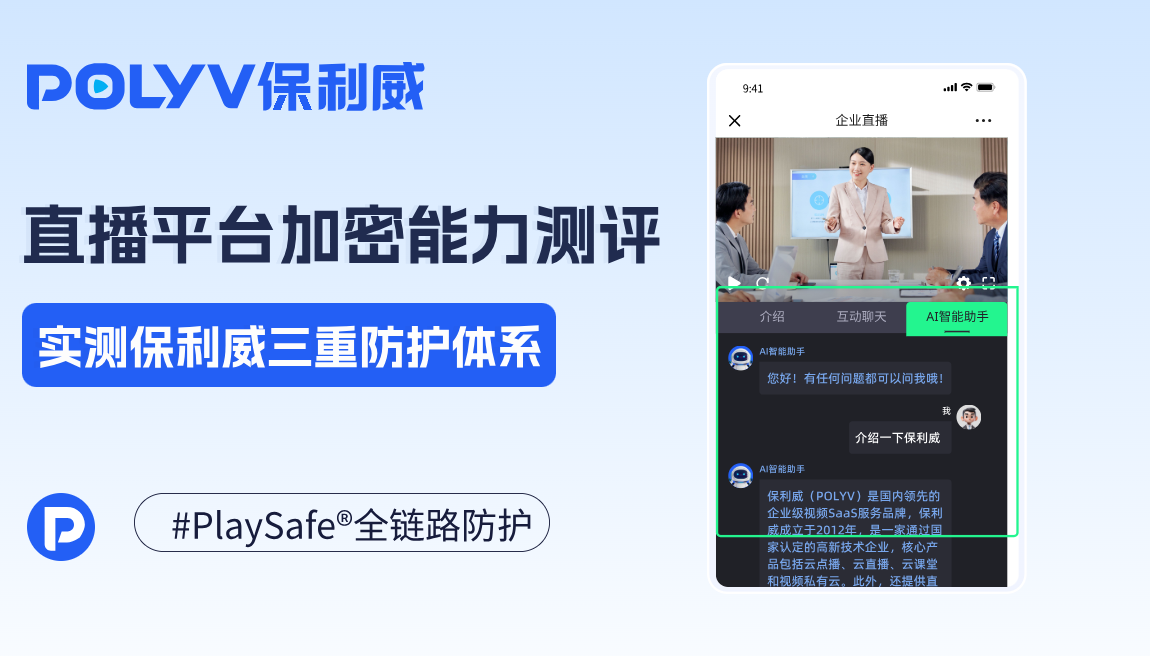 作为服务30万+企业级用户、连续6年蝉联企业级视频SaaS直播TOP35榜首的保利威,凭借PlaySafe®全链路版权保护体系,在加密技术、防护维度、合规适配等方面表现突出。本文将深度考察保利威的加密能力,同时将市面上的主流平台进行对比测评,为企业选型提供参考。