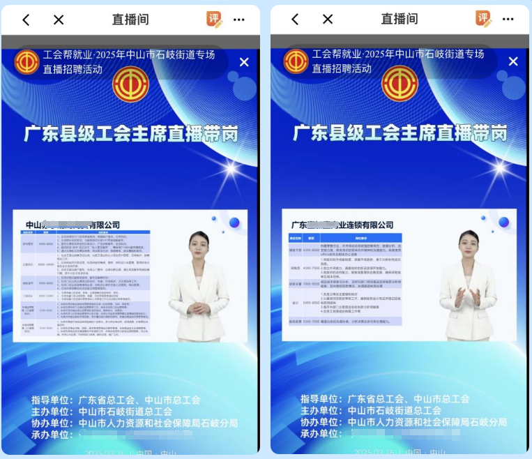 2025年,广东省人力资源和社会保障厅打造线上求职招聘服务平台,平台集成了线下主播探企、线上演播室连麦直播、AI数字人直播带岗、短视频企宣招聘等多种形式,为求职者及企业提供“云端桥梁”,助力求职者及企业用工需求精准匹配。