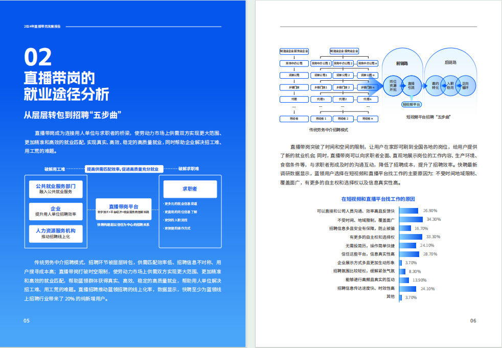 例如,江苏省打造了“苏心聘”智慧直播就业服务平台,集成直播招聘、短视频招聘、职业指导等功能专区,共开展直播超2928场,提供岗位超451万个。