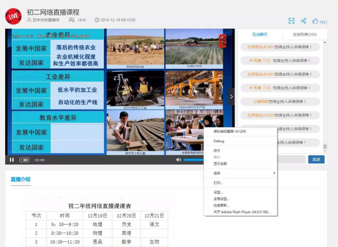 A跨越空间性。教育直播突破时空的限制,教师开通教学直通间,学生连网即可用任意终端进入直播间学习,实现了教学知识的实时连接;