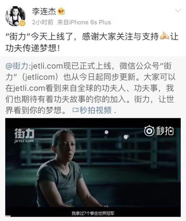 李连杰入局短视频 创办功夫视频网站“街力”