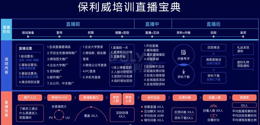 二,直播培训运营实战手册&SOP流程卡、教学直播检查清单。通过实战手册、流程卡一一对应直播前中后需要注意的操作步骤,一一勾选,将直播流程标准化。