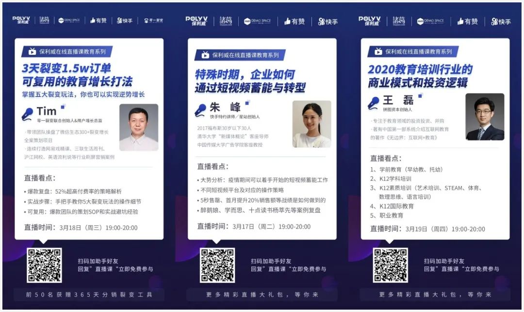对直播工具的学习只是第一步。保利威依托多年教育行业积累,组织开展多次主题直播沙龙,邀请有关专家和行业内人士通过“云论坛”探讨疫情影响下的在线教育,积极探索并推动后疫情时代线上线下教育融合发展。