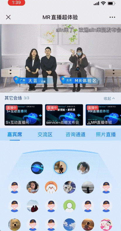 在MR体验直播间中,身处广州和北京的朋友实时同屏交流互动,并入座专属嘉宾席,打造真实的参会体验!(剧透:下周会出案例文章哦,敬请期待)
