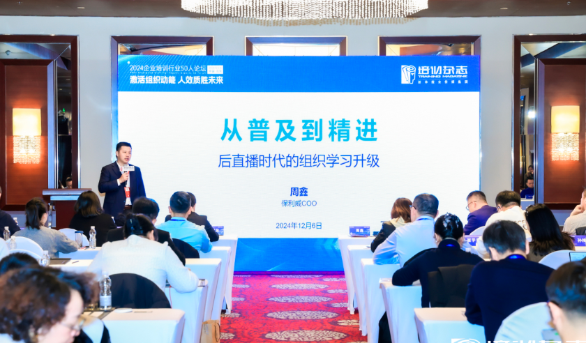 12月5~6日,由《培训》杂志主办的“2024企业培训行业50人论坛”在北京举办,保利威COO周鑫受邀出席论坛并作主题分享。