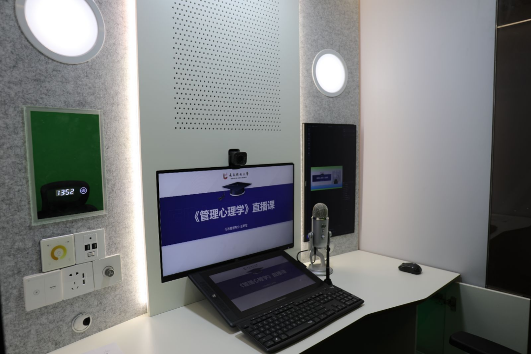 学生进舱可以体验电商直播实训、云辩论、云竞演、十大歌手等实践实训与校园活动。得益于直播舱的私密性和隔音性,学生能保持好专注性,从而更好地应付比赛/辩论/活动中的各种突发状况。