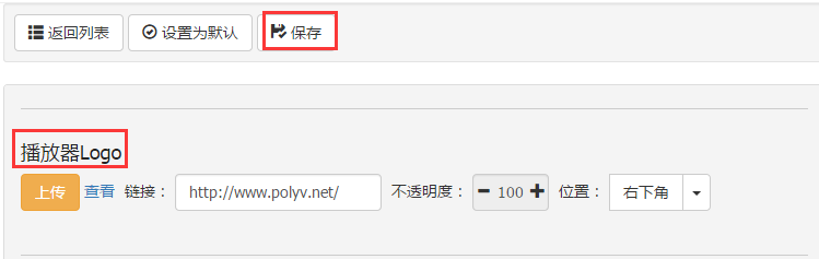 (4)设置LOGO跳转地址(观众点击LOGO后的跳转地址,示例设置是保利威视官网地址)。