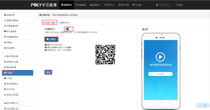 云视频服务商保利威视可在移动端设置直播引导图,图片显示在进入直播页面之前,用于展示本次直播活动名称或相关介绍内容,起到活动宣传、品牌展示等作用。以下是设置详解。