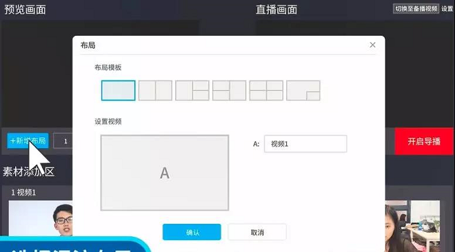 布局设置好后,点击“开启导播”,预览画面即可出现在左边预览区域;
