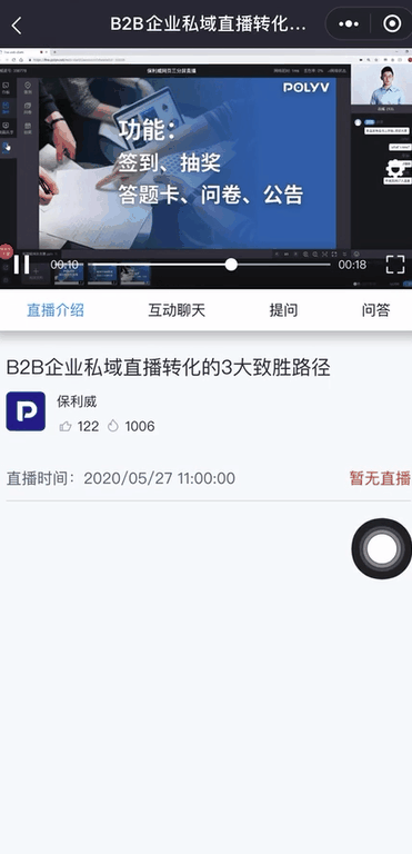 现在使用live 学一学小程序观看,可以实现直播连麦,同时还支持答题卡、抽奖、问卷等多项互动功能。