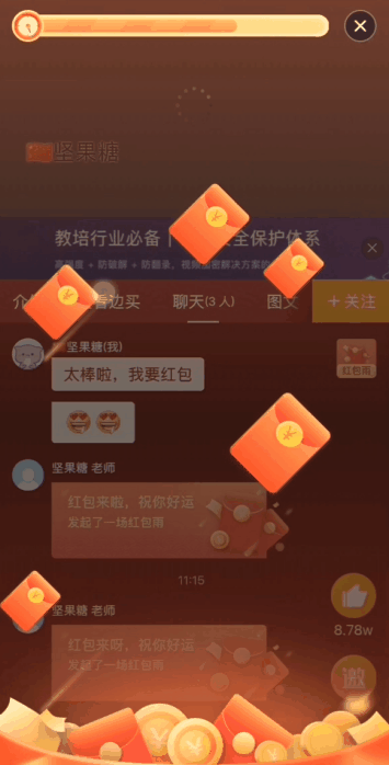 直播红包雨:屏幕降下红包雨,让直播互动气氛更热烈;