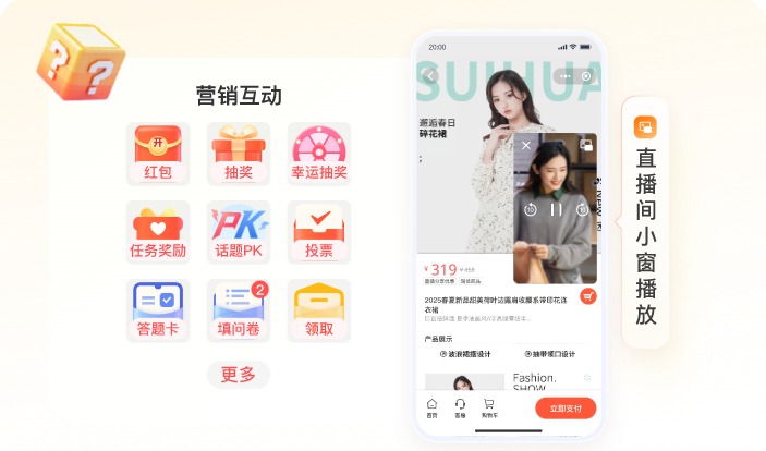当前的直播政策下,如何给品牌小程序集成直播间?私域直播平台保利威提供基于场景的直播系统SDK集成方案/API接口,支持定制直播间元素、功能、数据埋点位置设计等,帮品牌打造专属带货直播间。