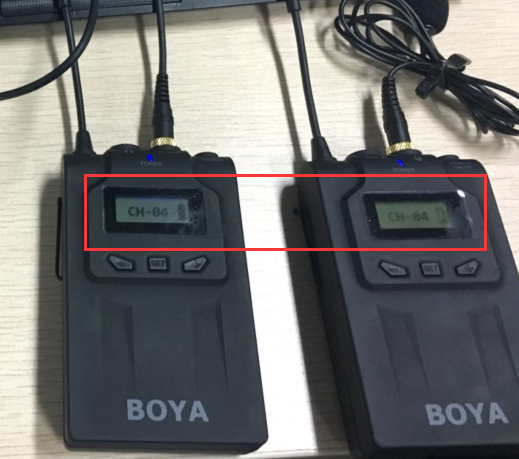 2.装好线之后,长按发射端及接收端的电源按钮,开机后,确认频段一致。如接收端是CH-04,则发射端也应该是CH-04;