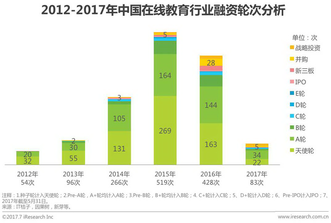 直播技术不断成熟,直播互动教学最大限度还原教学场景,而市场经过不断的教育,用户对在线教育的认可度逐渐提高。目前在线教育市场已经不再局限于语言培训、职业培训,越来愈多的教育品类开始被在线化。据艾瑞统计,截至2017年6月1日,资本市场在兴趣类领域的投资共55次,且以天使轮融资为主,兴趣类教育正在开始由线下向线上延伸。
