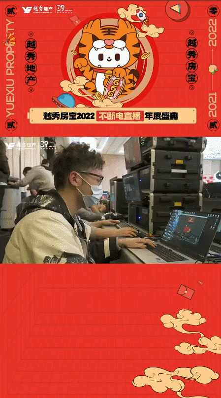 由于本场活动涉及线下双会场、九地连线、楼盘介绍、有奖问答、主题演讲、嘉宾专访等流程环节,对直播间画面设计、直播执行有着较高的要求。