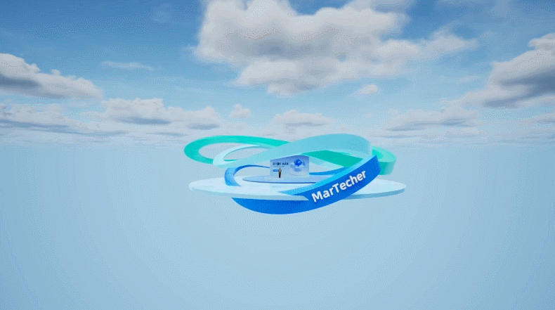 此外,今年特别推出的 MarTecher 峰会则采用了保利威SaaS MR场景库中的青空舞台,蓝绿相间营造出科技创新感,搭配MarTecher字样持续露出,持续强化观众对营销峰会的认知。