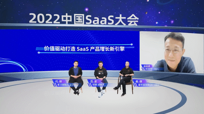 科技感十足的星空舞台场景、远超线下视觉冲击力的弧形虚拟大屏、崔牛会及SaaS大会元素品牌露出……为观众营造极致观感,提升线上参会的体验感和参与感。