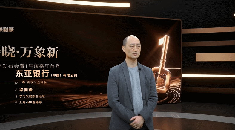 东亚银行(中国)有限公司学习发展部总经理梁向锋 在金色大厅虚拟场景,分享从业心路历程