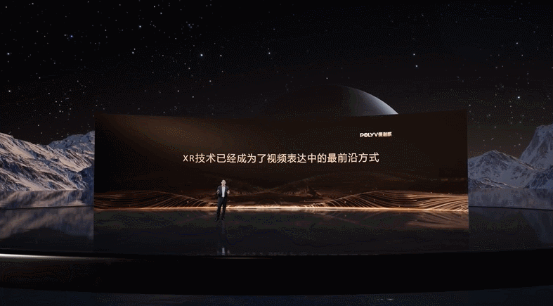 基于XR宏大舞台场景,能够为嘉宾设计出更具科幻感的入场效果,影视级直播运镜表达能够让嘉宾讲话环节更立体,更富质感。