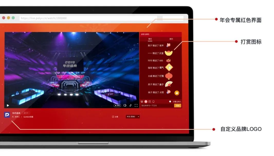 企业年会一般都有表演和演讲环节,这时候弹幕、打赏、投票等互动玩法就该用上了。