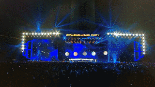 阿里巴巴20周年庆典上,舞台采用了多屏层次阶梯式的搭建方式。背后三块开合LED屏作为主屏,两侧分别是7块LED条形屏,构成了整个舞台的视觉造型。