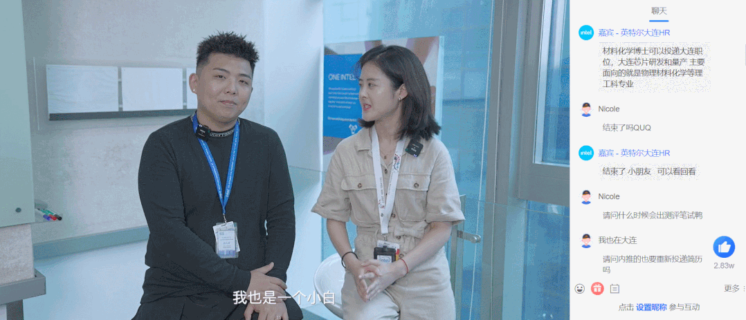 在直播过程中,英特尔让HR就聊天区的咨询进行针对性答疑,通过专业、高效地回复每个提问,给学生留下良好的印象,对公司的文化也起到一定的宣传作用。