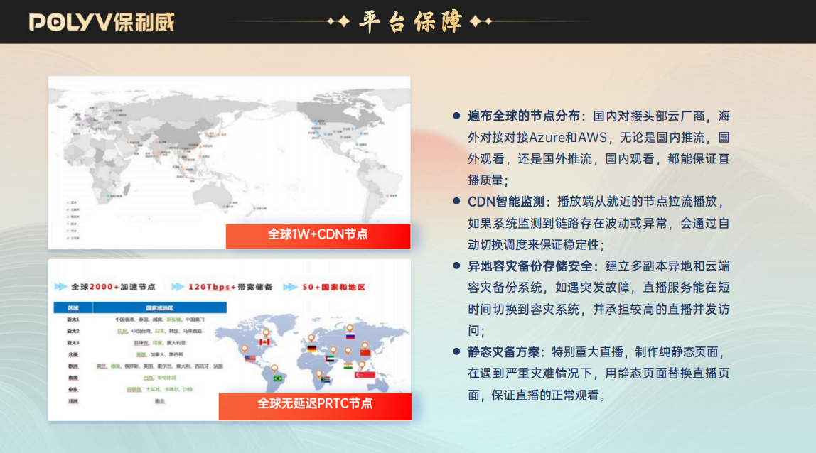 年会直播的网络环境可以说是“千人千网”,既有移动4G/5G搭建的户分会场、Wi-Fi支撑的主会场,也有偏远厂区的不稳定网络、跨国分支机构的长距离链路,任何一处网络波动都可能导致颁奖卡顿、连麦中断等尴尬场景。保利威年会直播能轻松hold住复杂网络环境,通过实时数据采集、智能分析与动态调控等手段,保障直播画面流畅、互动环节稳定、突发状况可控。
