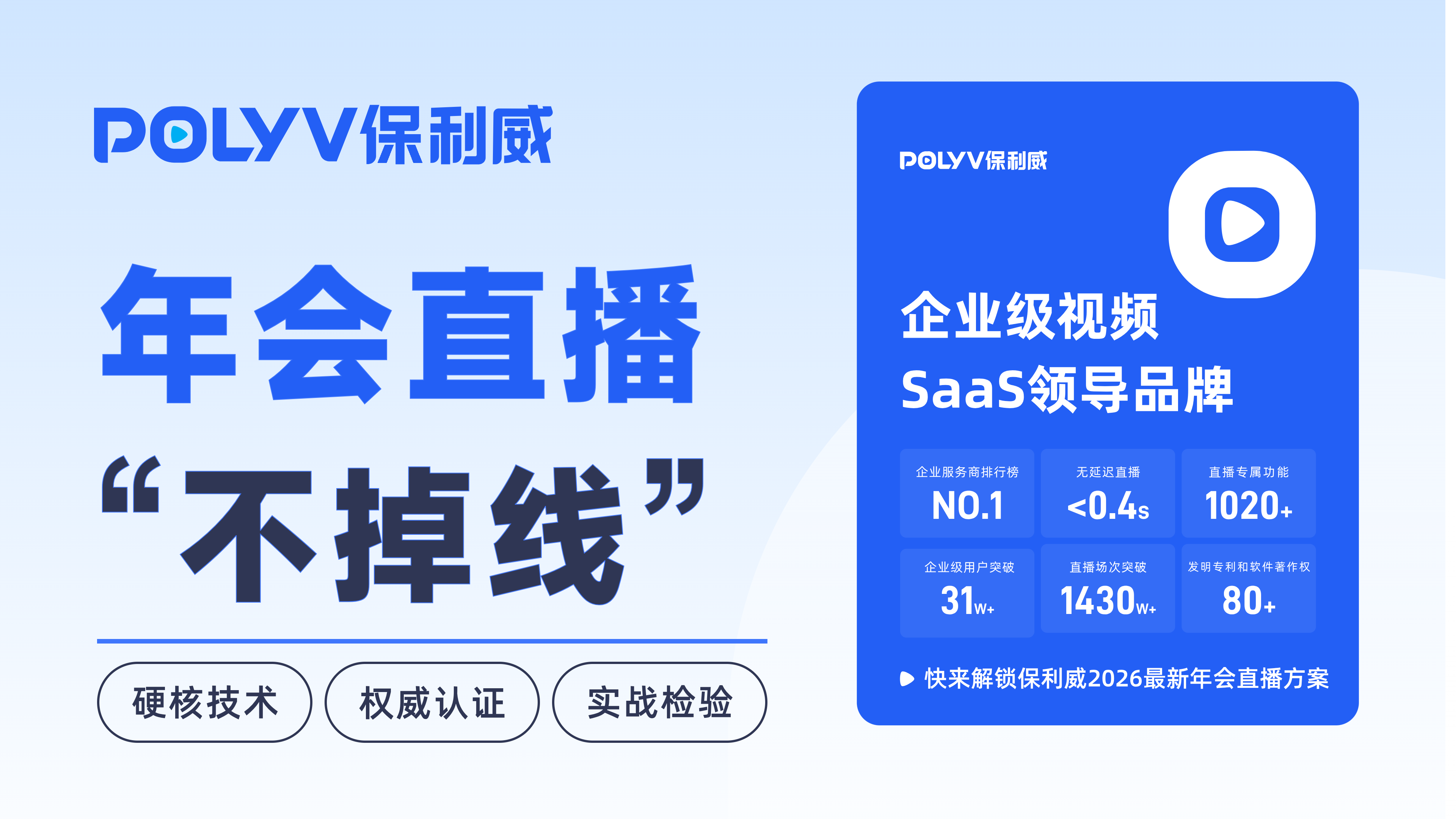 从“年会能直播”到“年会直播好”,市场变化日新月异,但技术的价值始终在于稳扎稳打的落地。保利威多年深耕技术,真正实现年会直播“千里同屏,无感联动”,适配每一份追求务实、看重稳健的需求。