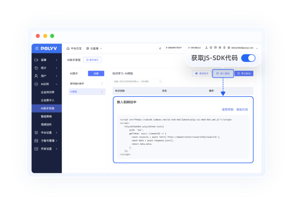 ·【AI答疑助手】新增「JS-SDK」,可集成至独立网站