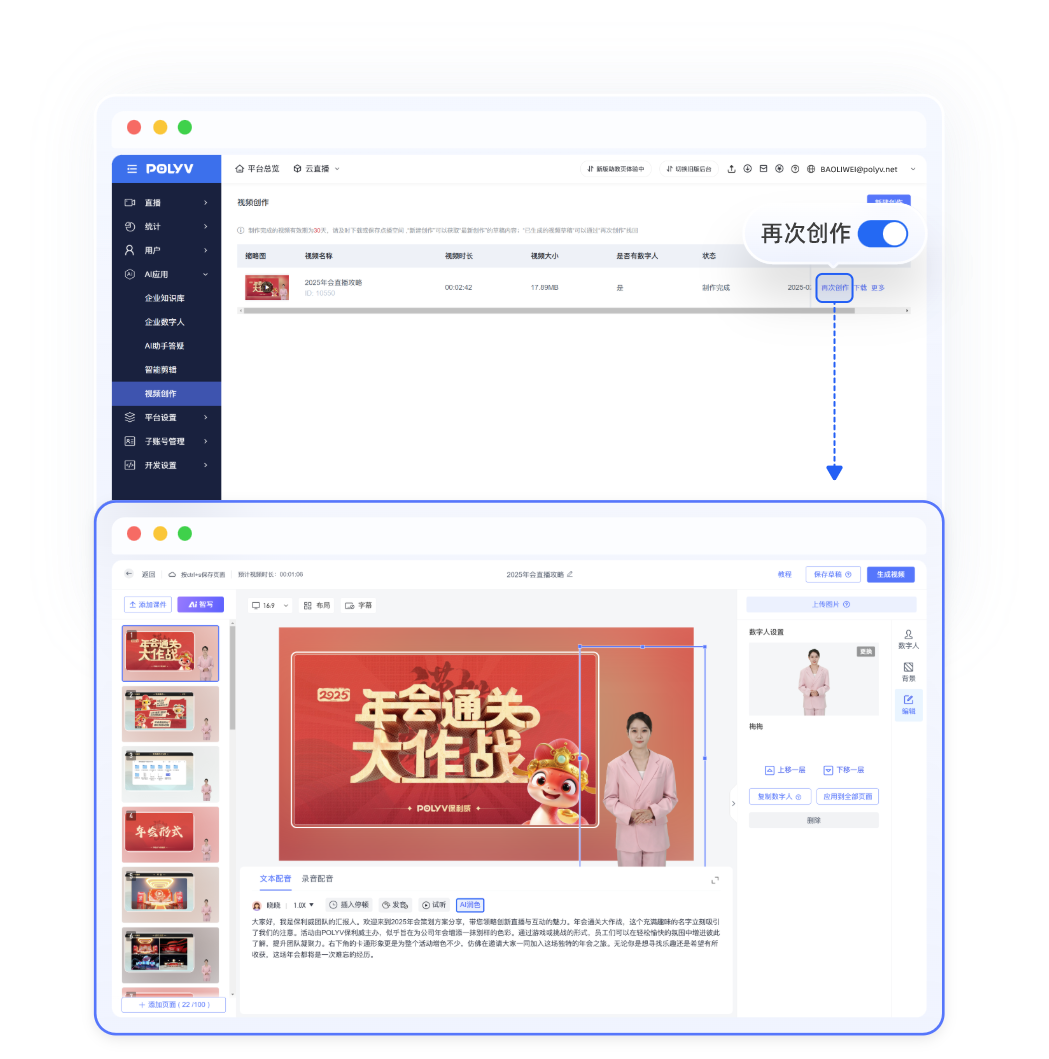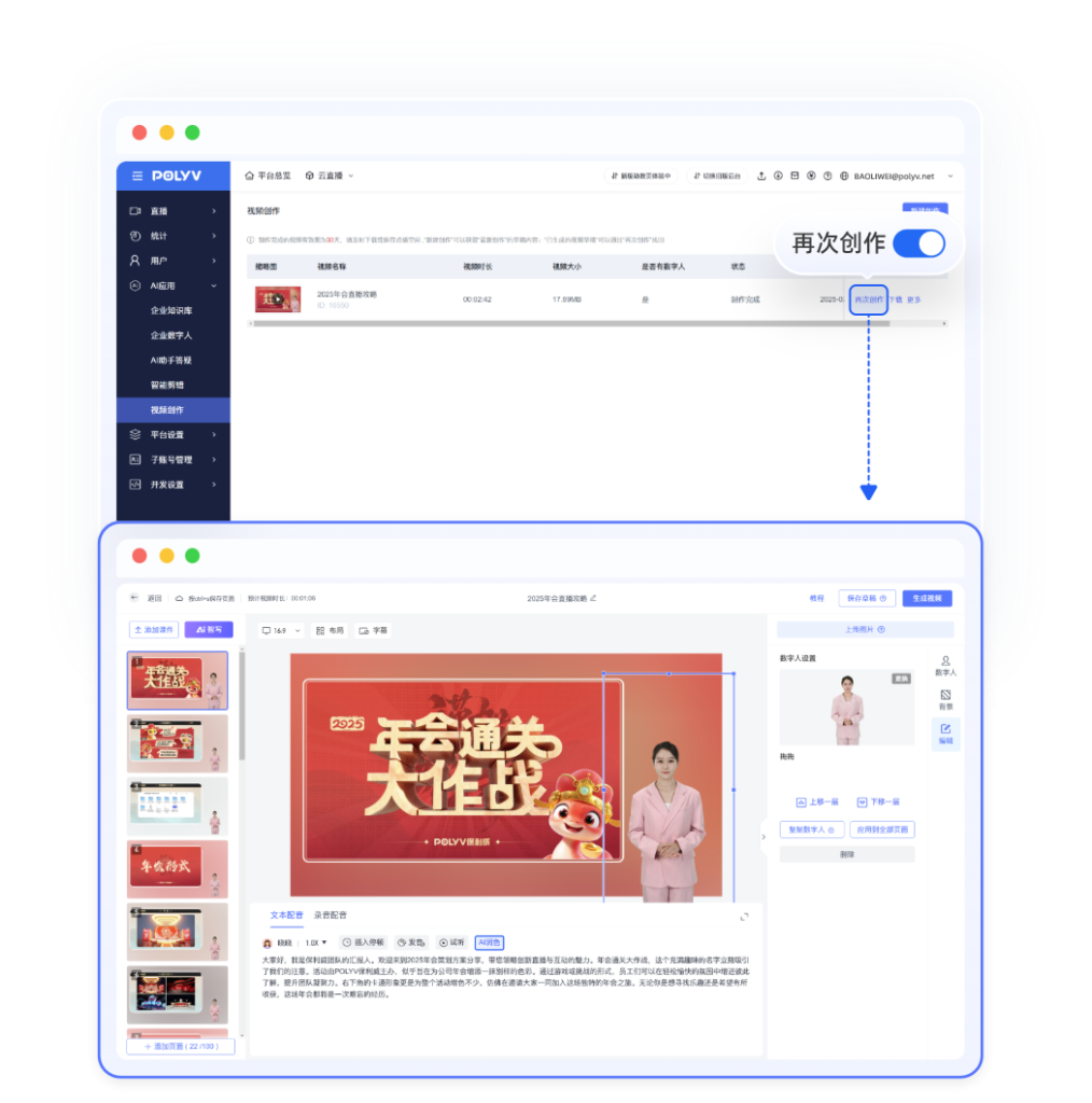 视频效果不理想需要修改?重新制作耗时费力!保利威视频创作支持二次编辑已生成的视频,无需从头制作,轻松优化视频质量。