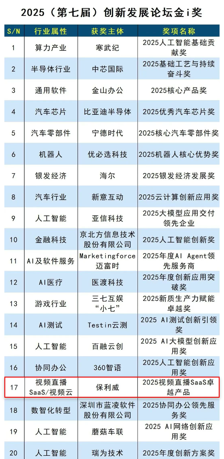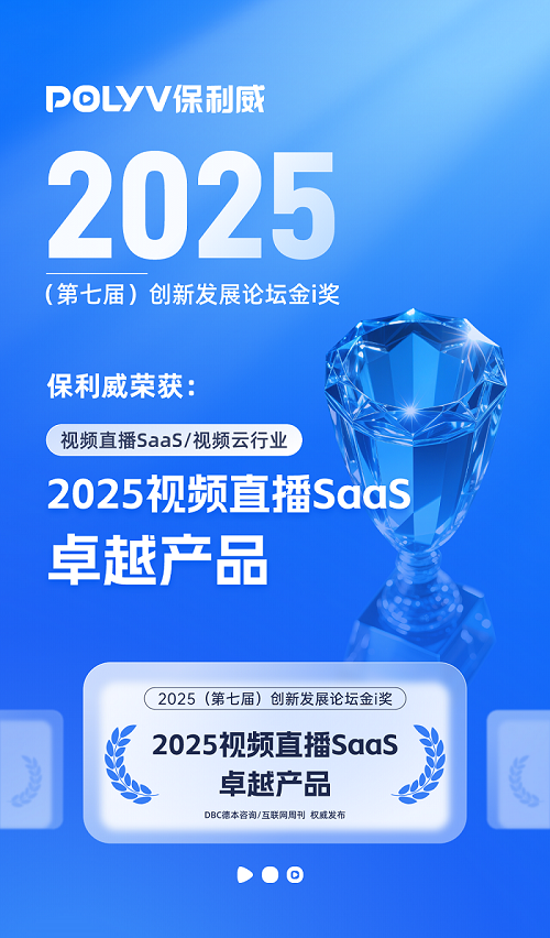 近日,中国科学院《互联网周刊》联合德本咨询、eNet研究院共同发布“2025(第七届)创新发展论坛金i奖”,保利威凭借音视频直播技术创新与行业实践双突破,一举斩获“2025视频直播SaaS卓越产品奖”、“全国企业新质生产力赋能最佳典型案例”两项重磅荣誉!这两项殊荣不仅是行业对保利威的高度认可,更是彰显保利威在音视频直播技术研发与场景落地的双重领先优势。