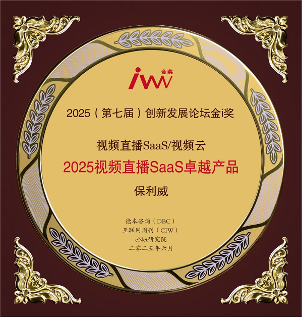 金i奖以“技术创新驱动产业变革”为评审核心,旨在表彰推动行业标准升级的标杆企业。作为企业级视频SaaS领导品牌,保利威以技术突破与模式创新推动新质生产力发展,树立视频直播SaaS行业标杆,与“金i奖”的创新精神完美契合!此次斩获“视频直播SaaS/视频云”行业“2025视频直播SaaS卓越产品”荣誉奖项,是行业对保利威创新能力的高度认可!