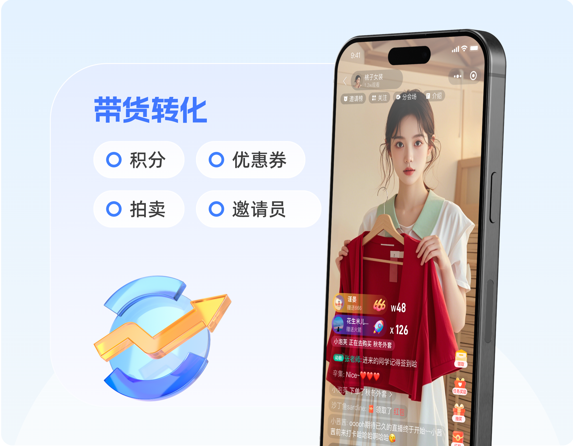 在直播中一边场景化地讲解展示商品,一边推送商品卡片、优惠券,直播间内直接完成“种草→答疑→购买”,加速流量变现。