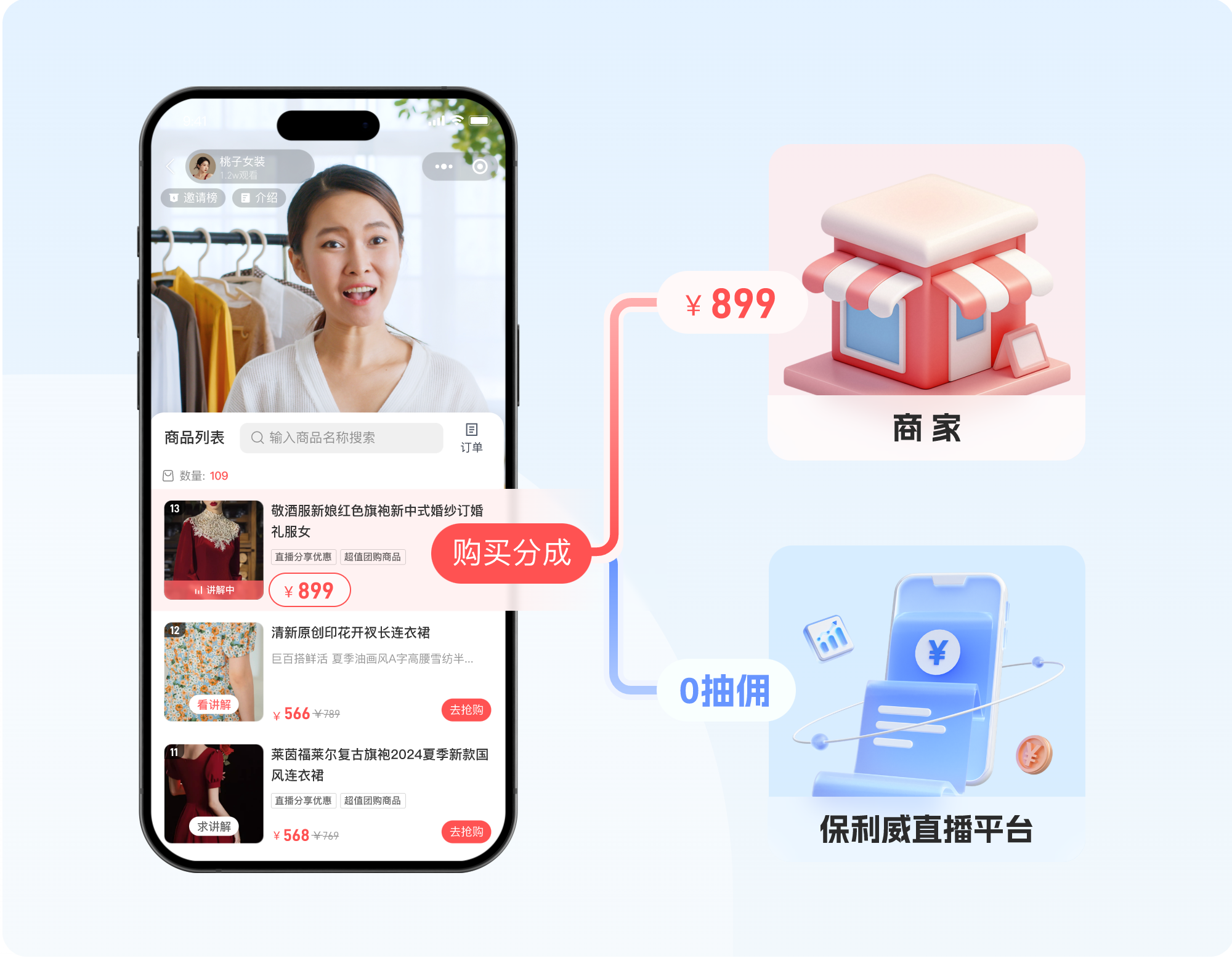 无论是直播间直接购买还是跳转外链支付,保利威均不抽取佣金,让每位商家拥有“0佣金”的私域直播商城,别有压力噢!