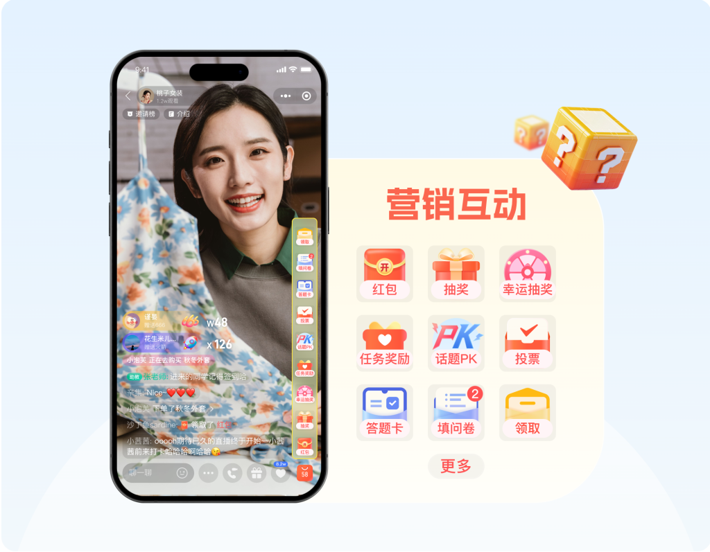 保利威为私域直播打造系列营销互动功能,提供任务激励+红包抽奖+观看时长抽奖等提升直播观看时长的玩法,帮助商家留住用户、种草心智。