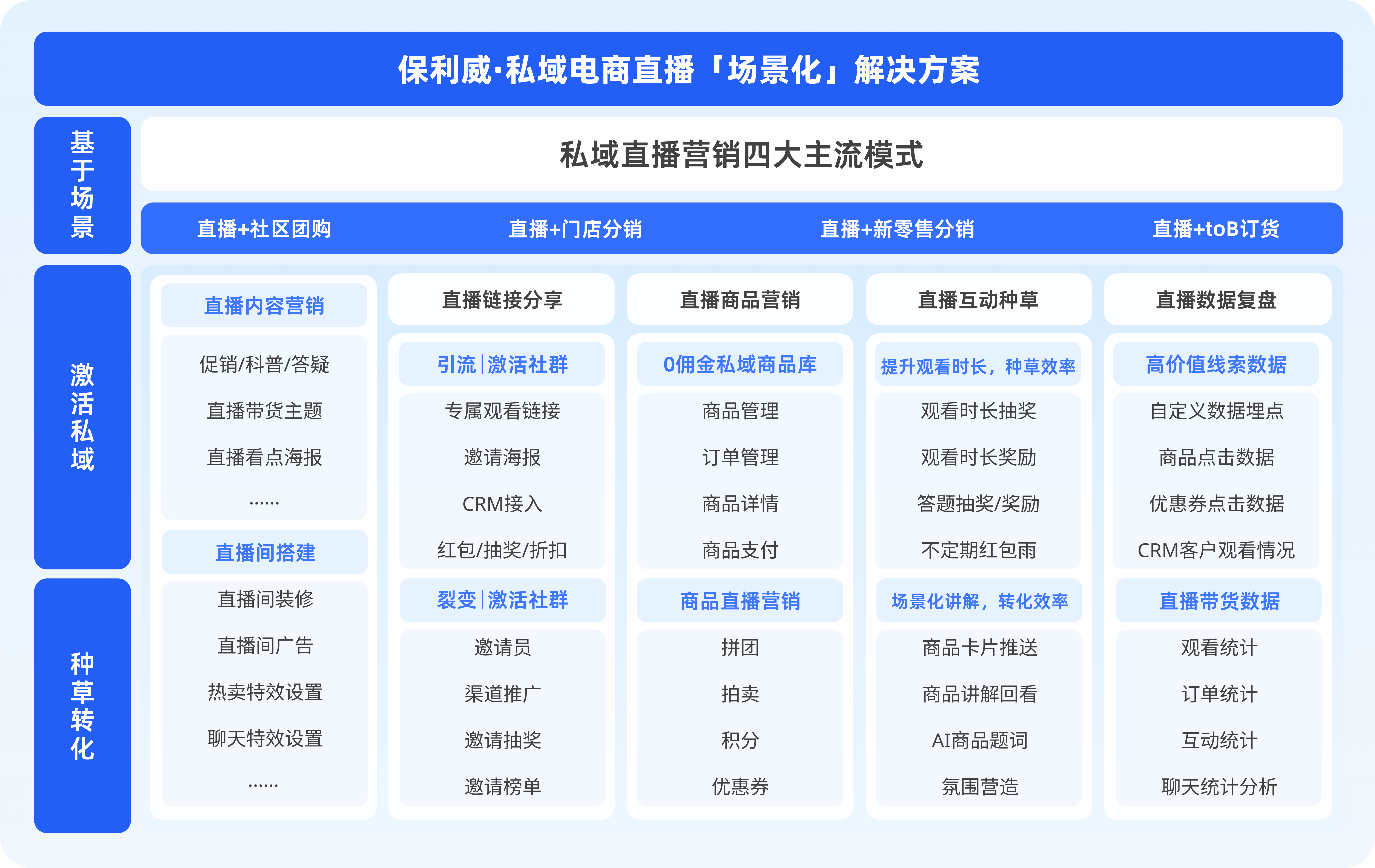 保利威【私域电商直播】解决方案重磅上新!一站式私域直播营销工具,解决裂变引流、营销互动、带货变现、数据分析等关键难题,助力构建以直播为核心的私域营销体系,激活私域、加速变现。